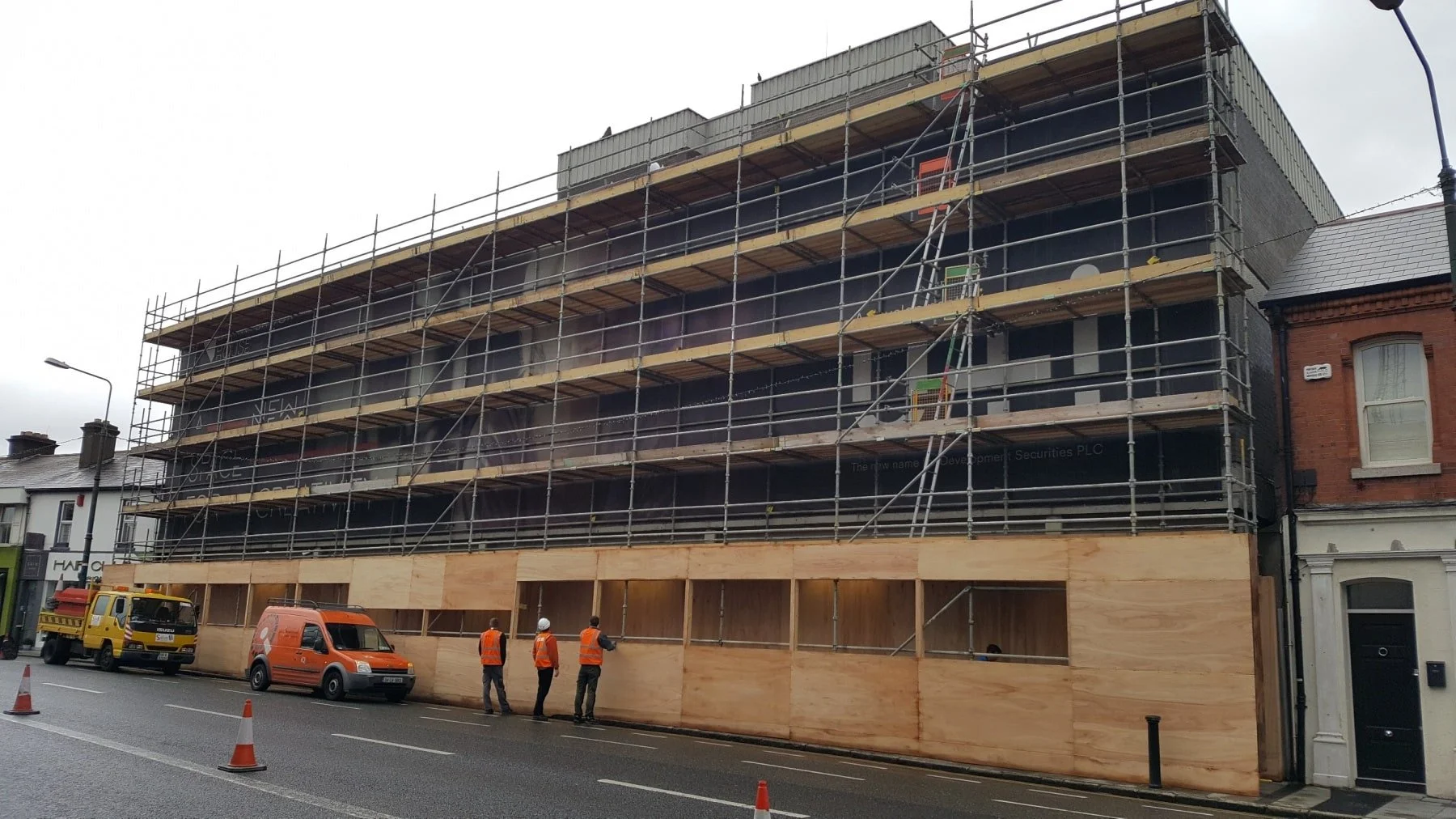 For the design, U+I turned to the branding consultancy, Neworld Associates who came up with this great concept. Also part of the team was Collen Construction who is carrying out the Construction work on behalf of U+I and Brogan Scaffolding, who built and installed the scaffold, making sure it was prepared and installed perfectly (and safely of course). Essential for a job of this precise nature.