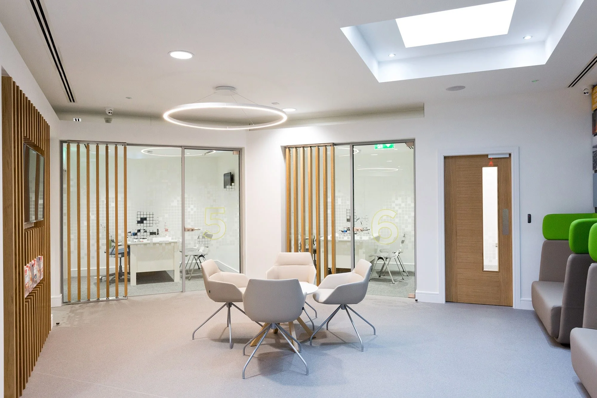 CHALLENGE Banking environments need to balance professionalism with approachability. Each element had to work together to create a welcoming space.